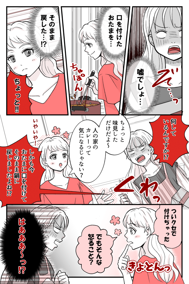 3. <義姉が口をつけたカレー事件>勝手に味見?⇒おたまから直接?⇒鍋にイン!全部ヤバ【まんが】