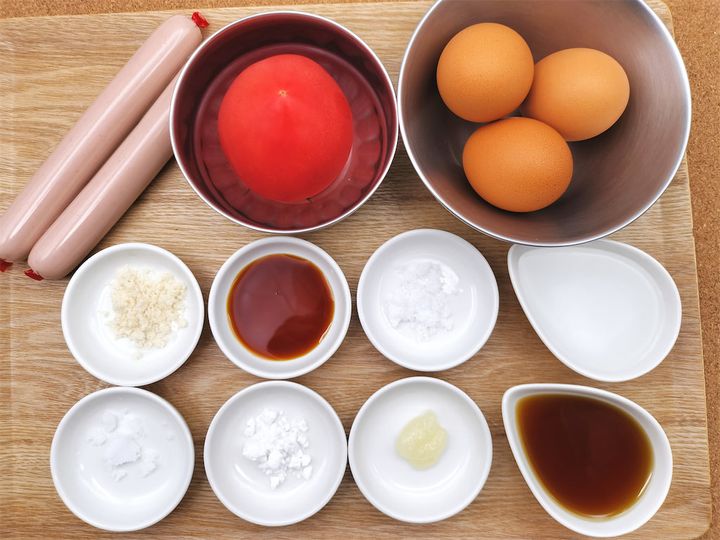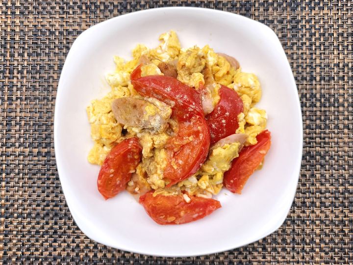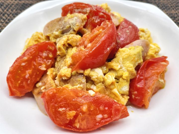川越シェフの「トマトと卵 魚肉ソーセージの炒め物」の材料と作り方