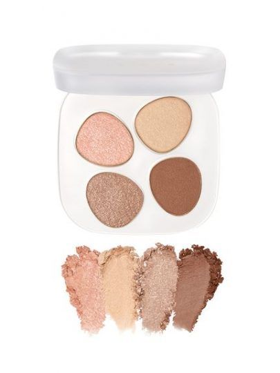 ベージュからブラウンを揃えた4色アイパレット。単色使いでも、カラーのレイヤードでも、捨て色なしで活躍。適度なきらめきで目元を華やかに。