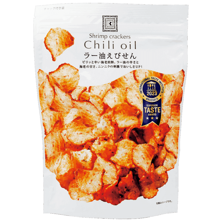 「ラー油の辛さと海老の甘さがやみつきになるスナック。ニンニクの風味がきいたピリ辛で濃厚な味わいは、おやつだけでなく、お酒のおつまみにもぴったり」(羽田空港店スタッフ)
