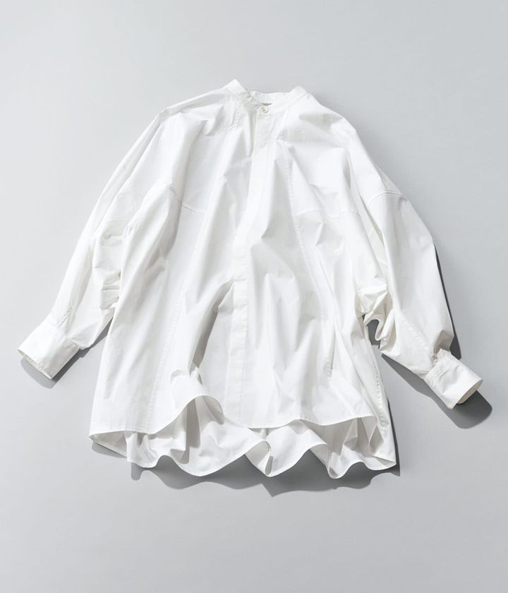 デビューコレクションでは様々な白シャツを展開。これは、ビッグシルエットとボリューム袖がポイントです。シャツ(アルノ/3rd)