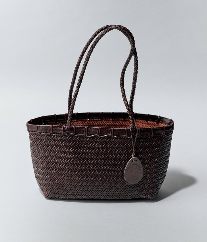 牛革の編み込みバッグは、タブレットが入る大きさで肩掛けもOK。仕事シーンでも活躍。バッグ〈H21×W28×D10cm〉(ルメン)