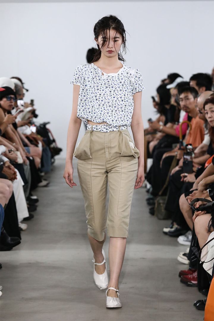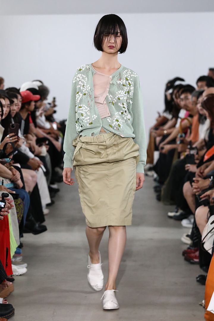 3番目に登場した花柄のプリントTシャツのルックについて、村上は「こういうことがやりたかったと思えたルックでした。今回からアシスタントも一緒にデザインを進めたのですが、そのアシスタントが手がけたものです。自分以外の人がデザインしたものには、嬉しさと同時に楽しさを感じ、特に印象に残っている」と話してくれた。