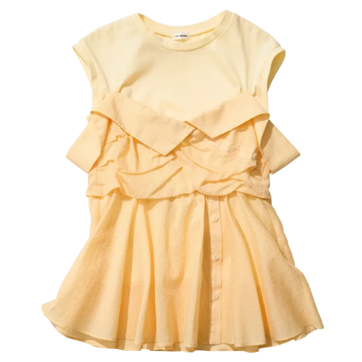 シャツをレイヤードしたようなデザイン。色もデザインも目を引く1枚であかぬけて。