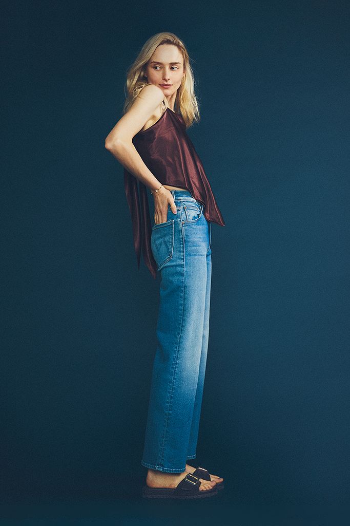 もたつきを一切感じさせない、ウエストがくびれたストレート。太ももからひざにかけて強めに入ったウォッシュによっておのずと立体感も生まれて、気になるのっぺり見えを回避できる。ギザギザに縫われたバックポケットのステッチが、ヒップのボリュームの目くらましに有効。 ブルーストレートデニムパンツ/マザー(LITTLE LEAGUE INC.)