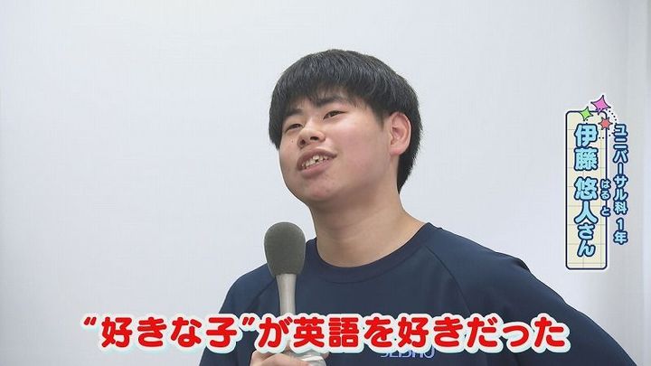 世永アナ:「どうして急に英語やりたいって思った?」伊藤 悠人さん:「恥ずかしいんですけど、“好きな子”が英語を好きだった。好きな子が英語好きで繋がれたらなと思って英語を頑張ったら、英語を好きになっちゃって」