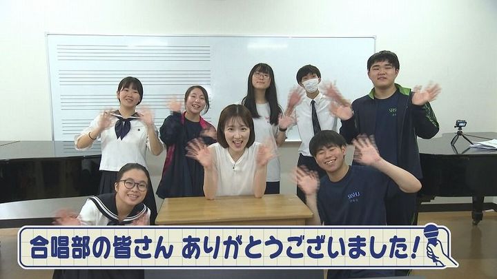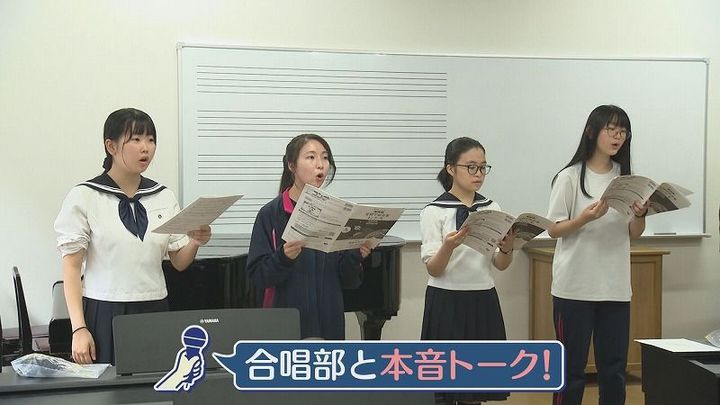 世永アナ:「こちらの教室からピアノの音色と、キレイな歌声が聞こえてくるのでお邪魔します。…合唱部の練習中でした!」