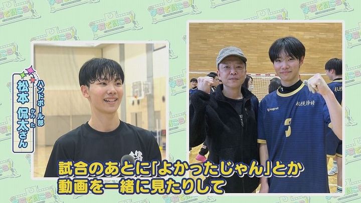 世永アナ:「お父さんとハンドボールの話をする?」松本 侃太さん:「しますね。試合の後に『良かったじゃん』とか、動画を一緒に見たりして、毎回試合を見に来て、全国大会もずっと来てくれて。自分が打つシュートは全部決めて声出してチームを盛り上げられたらと思います」