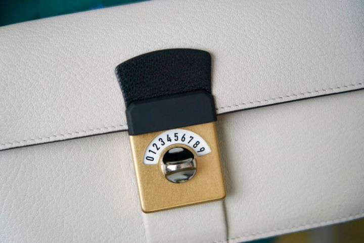 ロック付きのマルジェラのバッグ。「ロックをオフにしたら、マルジェラのアイコンの数字が出てきます。こんなしゃれた細工も気に入っています」と土村さん。
