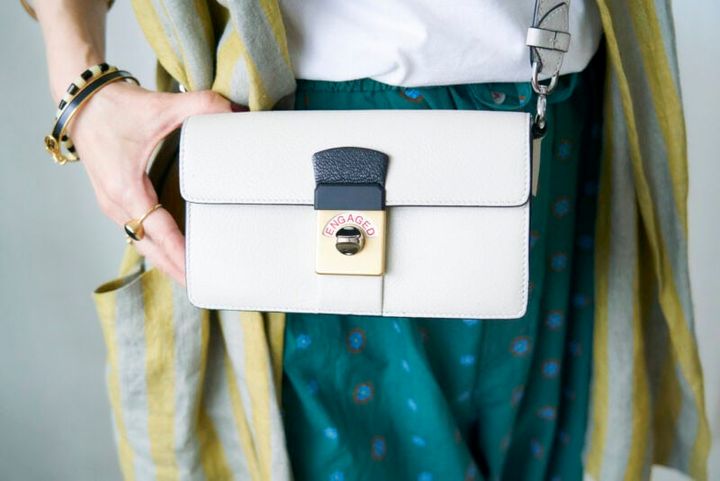 メゾンマルジェラのバッグは、カギを掛けると「ENGAGED(エンゲージド)」と表示される遊び心があるもの。お財布やパスポートなどが入るサイズで、かっちりとしたフォルムも土村さんのお気に入り。