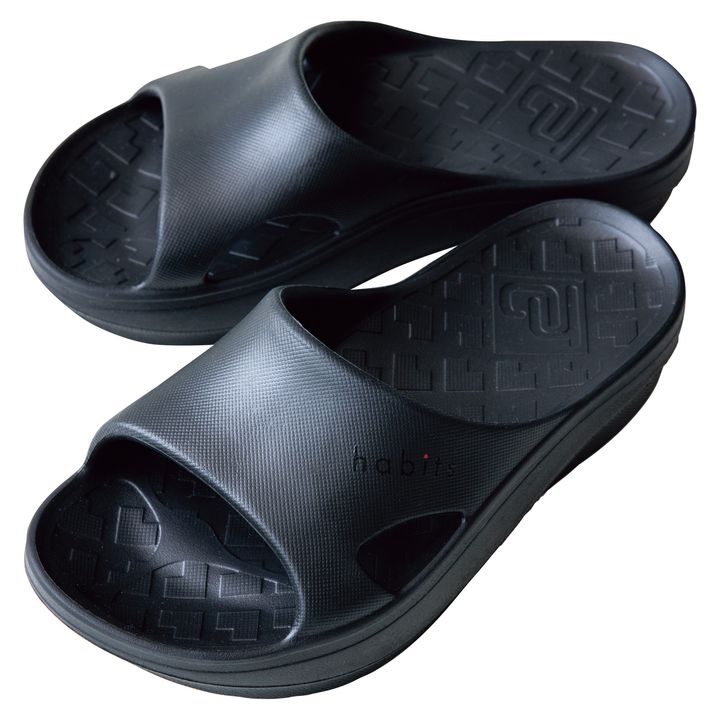 「履くだけで体幹が整うので家事をする時には必ず。50代からは体幹強化で正しい姿勢キープが必須です」ビーメイクサンダル¥8,800(habits)