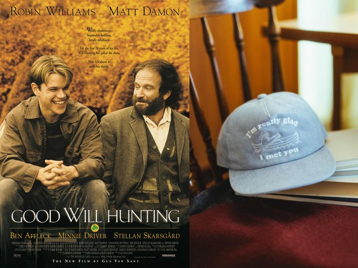 キャップのデザインには、公開当時の日本版キャッチコピー「あなたに会えて、ほんとうによかった。」の英訳「I’m really glad I met you」、そしてウィルとショーンが出会うシーンをモチーフとした象徴的なイラストの刺繍が施されています。淡いライトブルーのコーデュロイ素材を使用した特別感のある仕上がり。作品の世界観をイメージしてデザインされた、ここでしか手に入らない特別なアイテムです。