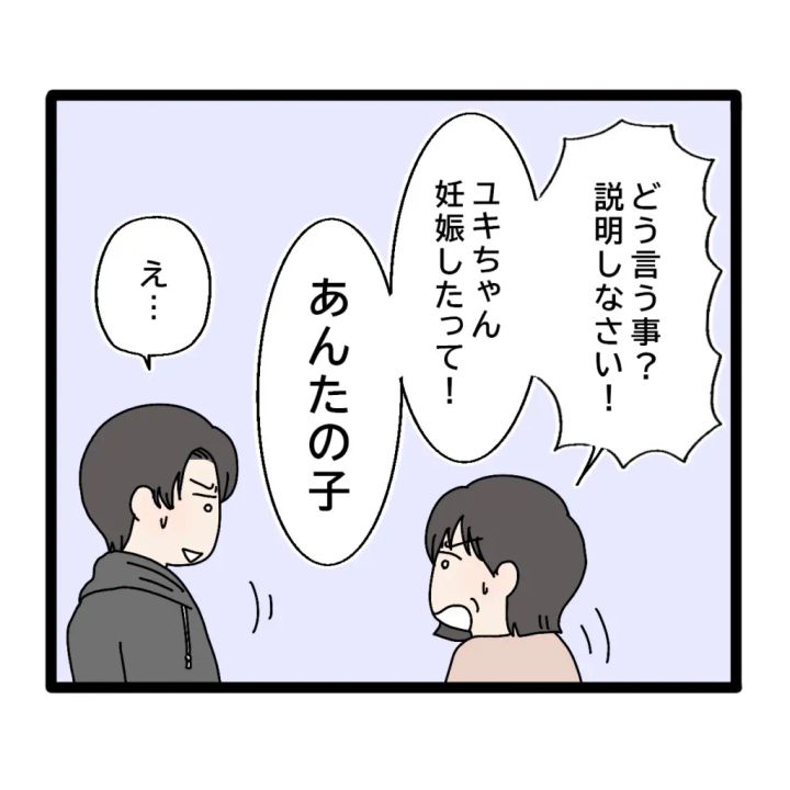 「どういう事?説明しなさい!ユキちゃん妊娠したって!あんたの子」お母さんからそう言われ、アサヒさんは「え・・」と固まります。