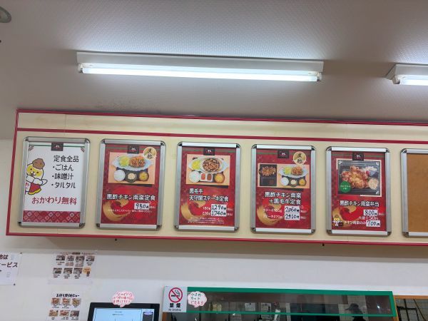 お店に入るとまずは食券を購入。「黒酢チキン南蛮定食」のほかにも、唐揚定食やステーキ定食、チキン南蛮と唐揚げのハーフ等、美味しそうなメニューが。どの定食もご飯、お味噌汁、タルタルがおかわり無料です。