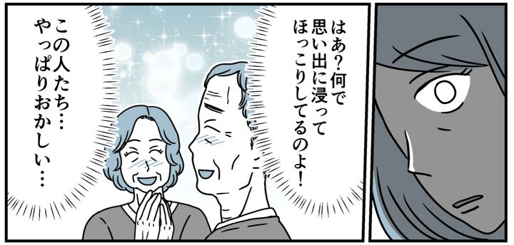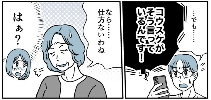 リエさんが「コウスケがそう言っている」と主張すると、なぜだか義両親は納得した様子。さらには義兄の行動を懐かしがり、思い出に浸るかのようなほっこりした空気感を醸し出してきたのです。心の底から怒りが湧いてきました。