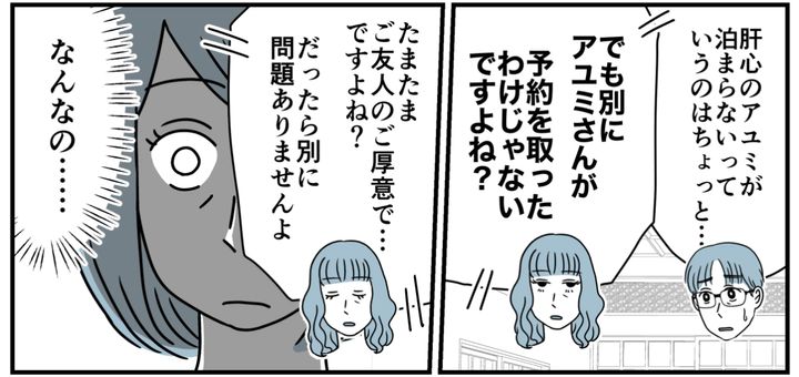 私たちが行くのは、なかなか予約が取れない人気の旅館。今回泊まれることになったのは、私の友達が行けなくなって厚意で予約を譲ってくれたからです。なのに私を別のホテルに追いやって、義兄たちが旅館に宿泊!? 意味が分かりません。