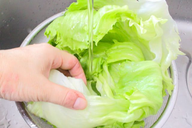 1. レタスをきれいに洗って、水分をしっかり拭き取ります。