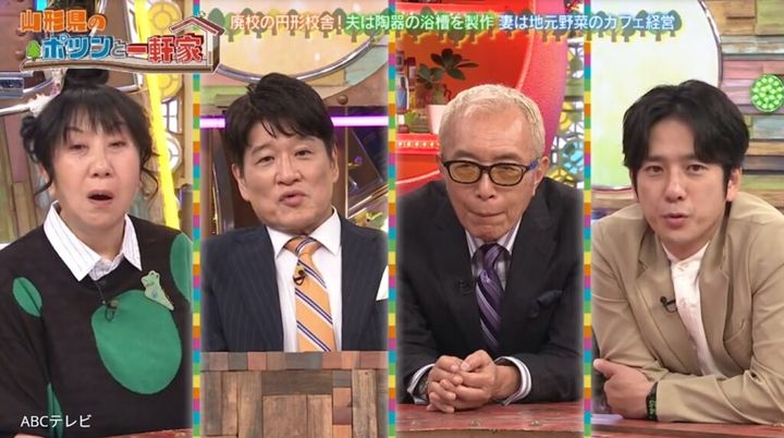 オープニングで所ジョージがポツンと一軒家での生活をゲストに尋ねると、二宮和也は「見てるだけで十分かな。レベルが高すぎて!」と及び腰。一方、室井滋は「人生で大きなしくじりや戸惑いがあったときに訪ねて、工夫がある暮らしをされている方たちに新しい知恵を授けてもらえることを期待しています」と、前向きな姿勢を見せた。