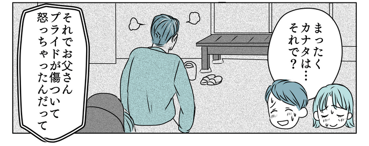 それを聞いて私は驚いてしまいました。夫も少し苦笑いしています。そして義父は、そんなカナタの一言にプライドが傷ついて怒ってしまったのだと言います。