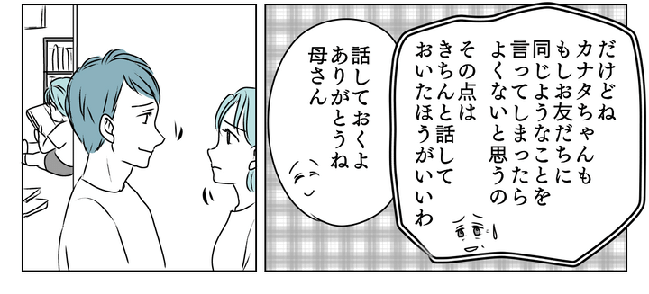 まさかの理由に苦笑いしてしまった私たち。義母も義父に注意してくれたようです。しかし「カナタにも、友だちに同じことを言わないよう諭してやってほしい」と言われました。