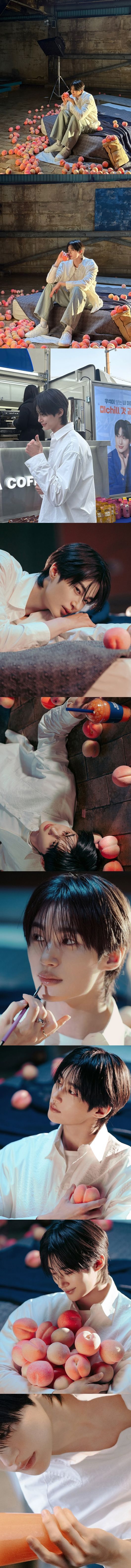 桃を小道具に多彩なポーズを披露している彼の姿は、特有のフレッシュさと爽やかさを際立たせている。