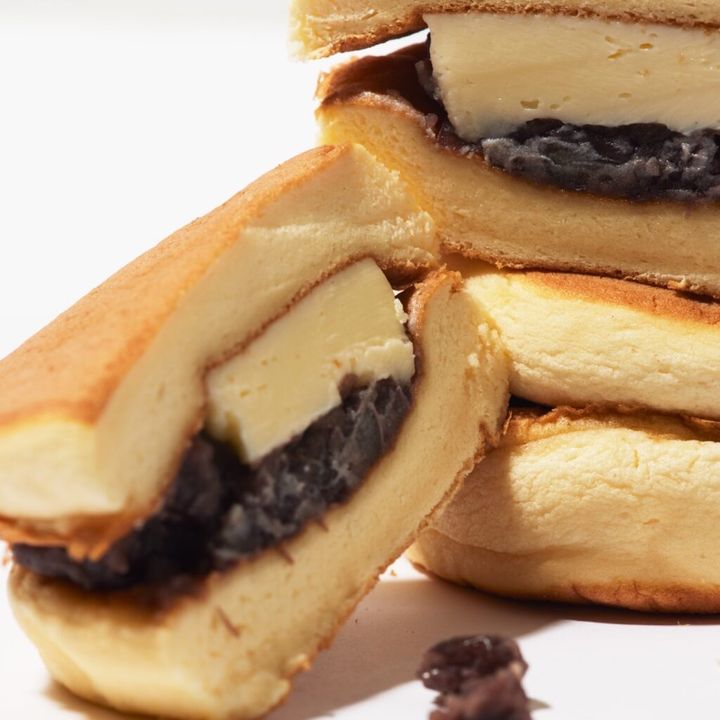 口に入れるとシュワッと溶けるスフレ生地に、カルピスバターとつぶあんをサンド。
