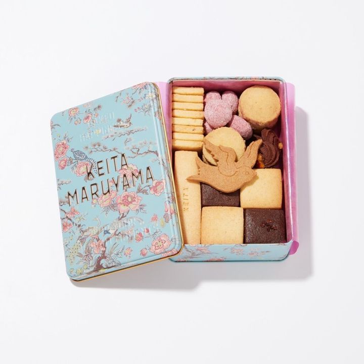 「大胆な色使いと繊細なディテールでファンの多いアパレルブランド『KEITA MARUYAMA』のデザイナー・丸山敬太氏が手がける、オリジナルのクッキー缶。ファッション性を感じられる華やかなパッケージは、ブランドのアーカイブ柄からピックアップしたもの。中を開けると、見た目も味も華やかな8種類のクッキーが詰められています。サクッと心地のよい歯ごたえと、何枚でも飽きずに食べられる上品な甘さで、思わず自分用にも買いたくなってしまいます」(中川さん)