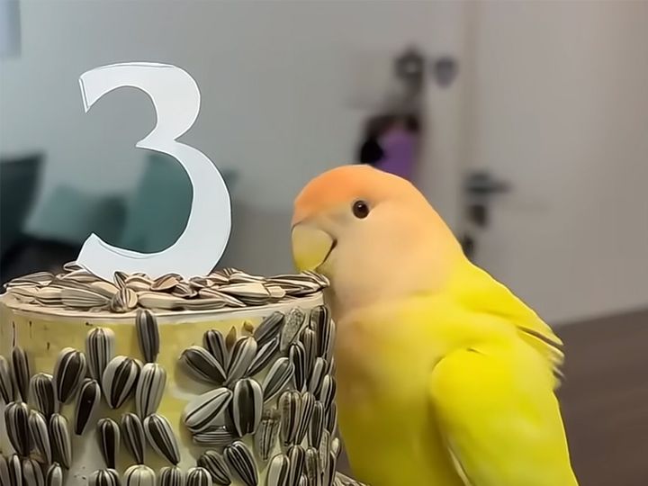 3. ひまわりの種で作った誕生日ケーキ、嬉しそうに祝ってもらう鳥さんの姿にほっこり