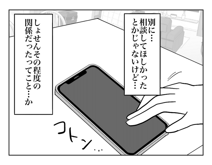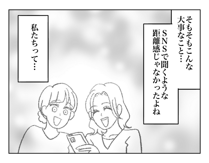 親しいと思っていたママ友の離婚話を、SNSを通じて知ったユキノさん。ミサさんとの関係はその程度のものだったのかと、寂しさを感じる気持ちもわからなくはありません。けれどまだ離婚の傷が癒えていなくて直接言うことはできなかったとか、ミサさんにもなにか事情があるのかも……? 真相は定かではありませんが、とりあえず今はそっとしておいてあげるのが一番ではないでしょうか。