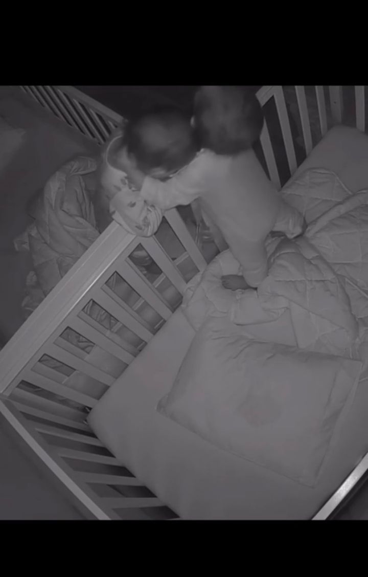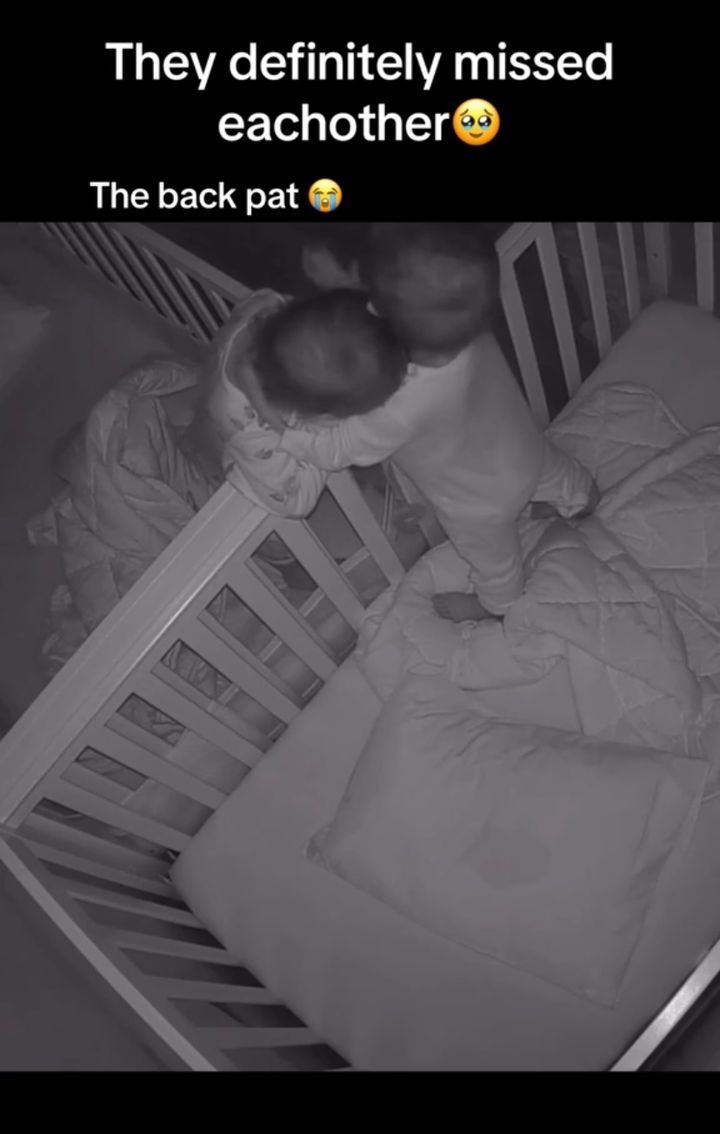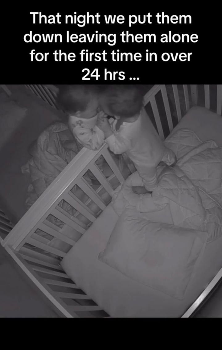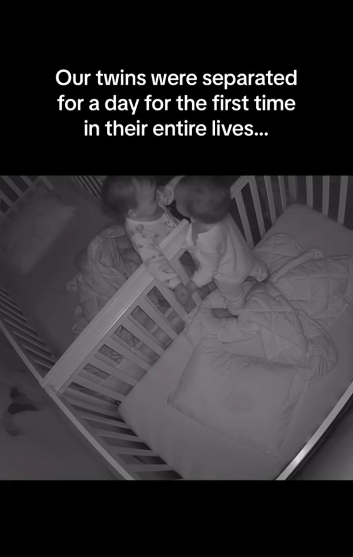 それは、双子の赤ちゃんたちが初めて離れ離れで1日過ごしたのち、お休み前に寝室で再会を果たした時のことでした。
