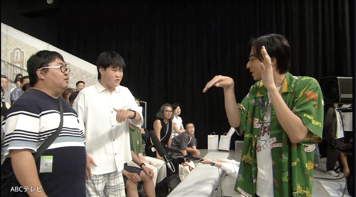 スタジオにいる永見探偵は、自分のネタの解説をすることになり、この表情に。観覧席の依頼者たちの前にツカツカと歩み寄り、「あれは、クルックーって、下に、重さで、(鳩時計の鳩が)沈んでるから、ちょ、わからんかったん!?」と解説ギレ。依頼者も負けず、「そんときは気づかんかったです!」と言い返し、「やっとわかった?」「はい!」「依頼ありがとうございました!」と、殴り合いを無事に回避し、一件落着した。