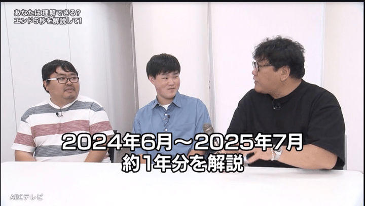 2024年6月〜2025年7月に放送された「エンド5秒」の調査がスタート。竹山探偵は「これが最後だから、3人で殴り合ったとしても、今日で解決しよう!」と鼻息が荒い。つまり、力づくでも「理解した」と言わせる意気込みだ。
