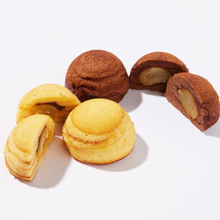 プレーンとショコラの2種入り。手のひらに収まるドーム状の見た目が可愛らしい。