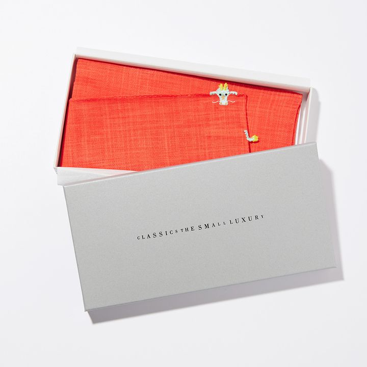 「厳選された良質な素材を使用する、ハンカチーフ専門店『クラシクス・ザ・スモールラグジュアリ』。ほかのブランドでは見つからない、ユニークで可愛らしいデザインが豊富に揃います。新年のギフトに渡すなら、『干支ハンカチーフ』がおすすめ。角にひょっこり佇む辰と、縁からはみ出した尻尾に思わずほっこり。店舗、オンラインストアともにイニシャル刺繍をオーダーできるのも◎」(桶谷さん)