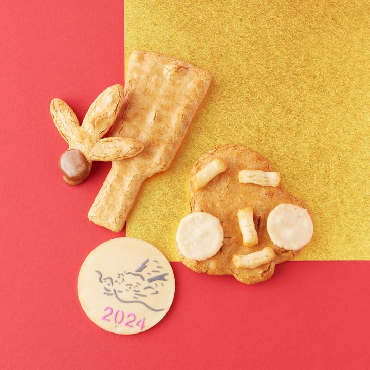 バターを使用していない和風のクッキーや、干支の辰の麩焼の他にも、鯛や招き猫、松、竹、梅など新春らしいめでたいモチーフの打ち物、金平糖など、最強の福が詰まった宝箱のような冨貴寄(ふきよせ)。カラフルで華やかなヴィジュアルと、上品ですがどこか懐かしく親近感のある味わいが楽しめ、大切な方々へのお持たせにぴったりです。販売期間は1月いっぱいまで。
