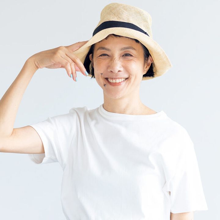 「くしゃっと畳んでも型くずれしないのでバッグにしのばせておけるし、私の頭にフィットするので夏の必需品です」