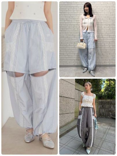 ツヤ感のある素材にレースやパイピングをプラスして、フェミニンに落とし込んだトラックパンツが登場。裾はゴムで絞れる仕様なので好みに合わせてシルエットが調整できます。下側の裾パーツをはずせば、ショートパンツとしても履けるのでアレンジの幅も広め♡