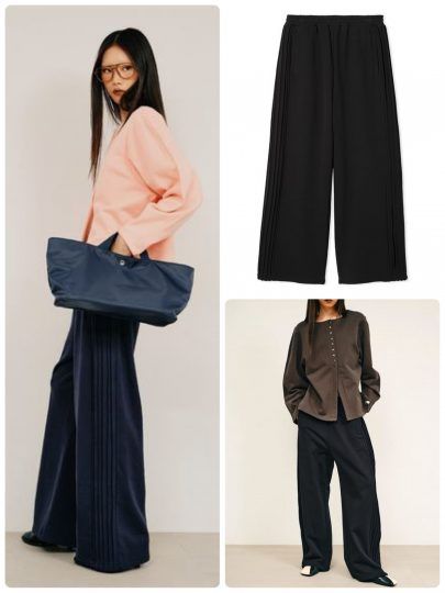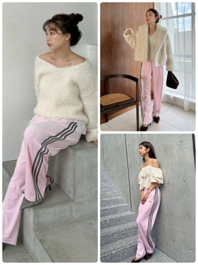 フェミニンなあしらいを加えた変化球トラックパンツも!