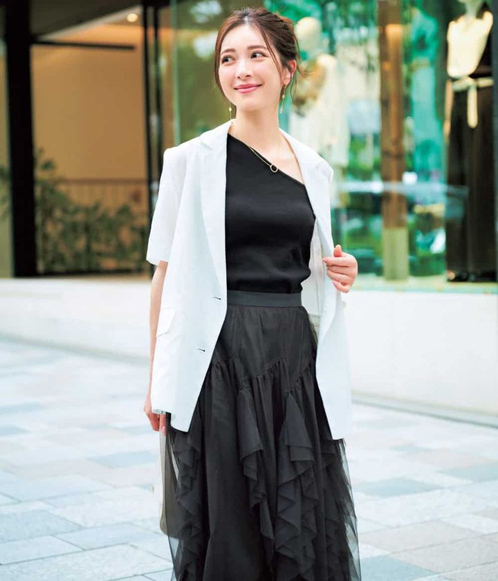 アシンメトリーで新鮮!【ワンショルダー】で手持ちの羽織りも印象チェンジ