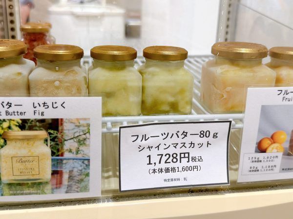 ファン必見なのが、今回の博多出店限定で登場した「フルーツバター80g シャインマスカット 」(1,728円)! 本店でも取り扱いがない特別な一品で、今回の目玉商品です!パンに塗るだけでなく、ホットケーキやスイーツアレンジにもぴったり。 COOの正木康江さん曰く、「お値段は少々お高めですが、とても美味しくおすすめです。」とのこと。数量限定なので、出会えた方はぜひチェックしてみてほしい一品です。