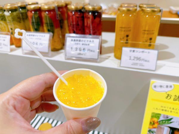 こちら、炭酸で割ったものを実際に試飲させていただきました。 ひと口飲んだ瞬間、果肉が口いっぱいに広がり、ぷちぷちとした食感とともに、甘夏ならではの爽やかな酸味と自然な甘さが弾けます。思わず「おいしい!」と声に出てしまうほどの感動でした。 ヨーグルトやジュースに入れるのはもちろん、お酒好きの方には焼酎割りがおすすめとのこと。ホットドリンクとしても楽しめるそうですよ。