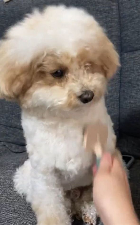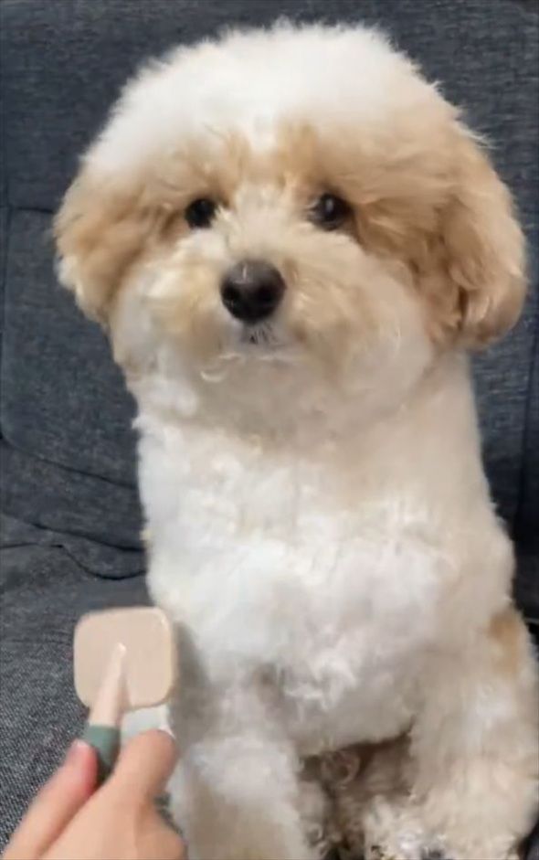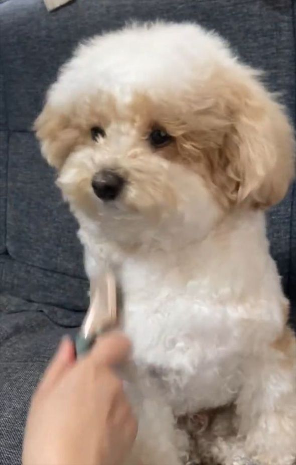 ブラシをあてられているのは、トイプードルの『ハチミツ』くん。 ブラッシング中の様子が撮影されていました。