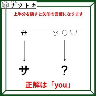 よって、問題の方も同じように上半分を隠すとアルファベットがあらわれます。正解は「you」でした。