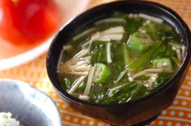野菜不足を感じている方に最適な一杯。ホウレン草にエノキとオクラを合わせるため、栄養満点です。エノキのほど良いトロッと感と、オクラのネバネバ食感のコラボがやみつきになります。