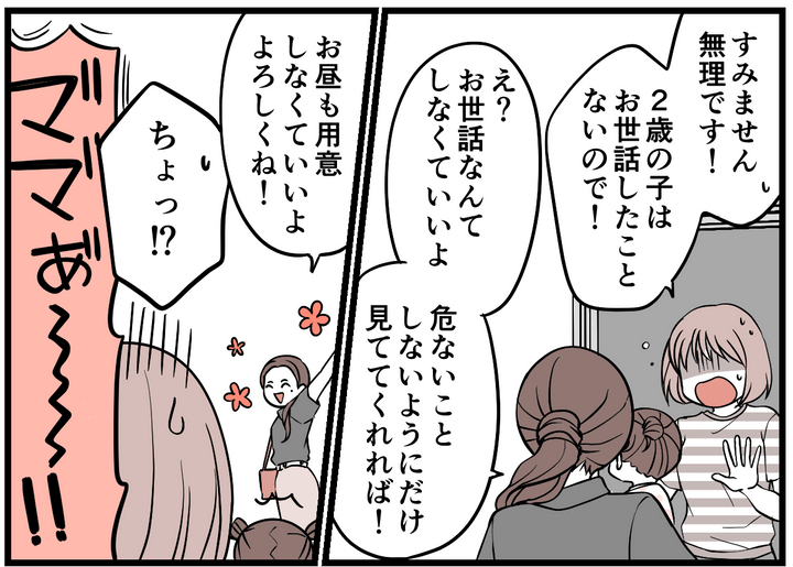義姉が突然、「急にごめんね、助かったわ。ありがとう~」と言って、2歳の娘・ミミちゃんを預けにきました。私は戸惑いながら、「私、2歳の子はお世話したことがないので……」と伝えましたが、義姉は「大丈夫、大丈夫。危険がないようにだけ見てくれればいいし~」と軽く返してきました。