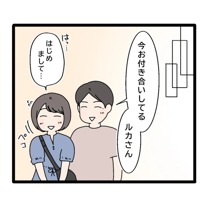 「今、お付き合いしてるルカさん」ユウトさんが紹介すると、「はっ・・はじめまして・・」とルカさんが挨拶して頭を下げました。