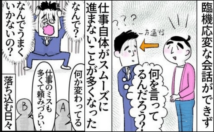 しかし、その場の空気を読んだり臨機応変な会話をしたりといったことに対して、夫は難しさを感じることが増えたそう。そのため、仕事自体がスムーズに進まないことも多くなりました。