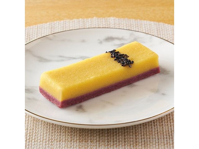 タルトとスポンジにマロンソースやホイップクリーム、マロンクリームを絞り、マロンダイスをトッピングしたスティックタイプのモンブランです。