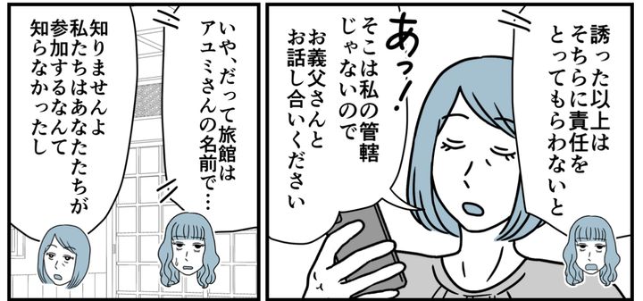 リエさんは「わが家は被害を受けた側だから、責任を取って宿を譲るべき」だと主張してきました。けれど私は義兄一家を誘った覚えはありません。それに義父が勝手に誘ったのだということは、義兄夫婦もちゃんと把握しているはずです。
