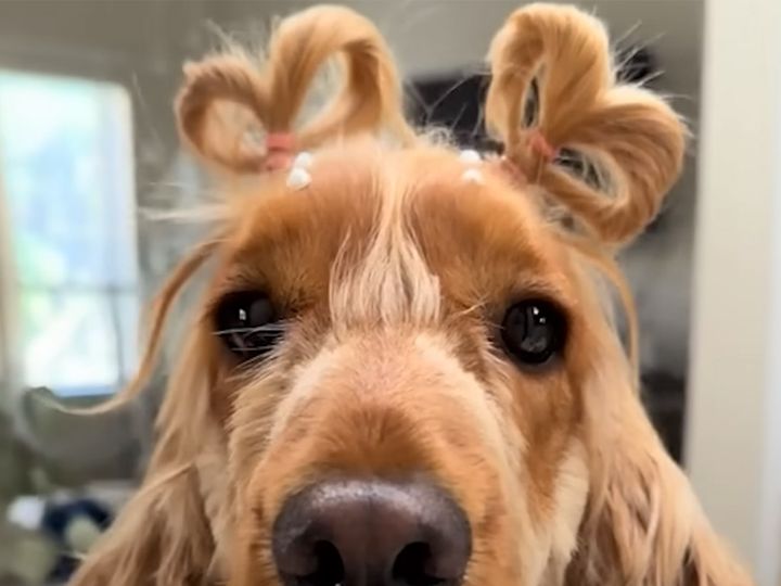 編み込みもお団子も自由自在! 飼い主さんにおしゃれヘアを作ってもらう犬さん
